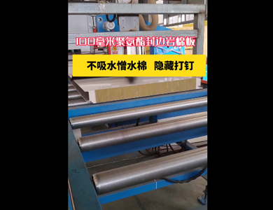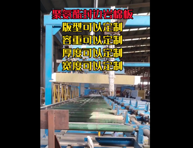 我們公司引進(jìn)意大利賽浦連續(xù)生產(chǎn)線,采用了六組份在線工業(yè)微機(jī)自動(dòng)操作(SIEMENS)混合澆注技術(shù)。生產(chǎn)流程分為開卷覆膜—壓制成型—鋼板預(yù)熱—高壓發(fā)泡—高溫固化—鋸切—板材冷卻—碼垛—自動(dòng)打包等功能與一體的自動(dòng)化生產(chǎn)線,年生產(chǎn)能力為130萬平方米。