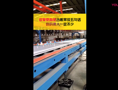 我們公司引進意大利賽浦連續(xù)生產(chǎn)線,采用了六組份在線工業(yè)微機自動操作(SIEMENS)混合澆注技術。生產(chǎn)流程分為開卷覆膜—壓制成型—鋼板預熱—高壓發(fā)泡—高溫固化—鋸切—板材冷卻—碼垛—自動打包等功能與一體的自動化生產(chǎn)線,年生產(chǎn)能力為130萬平方米。